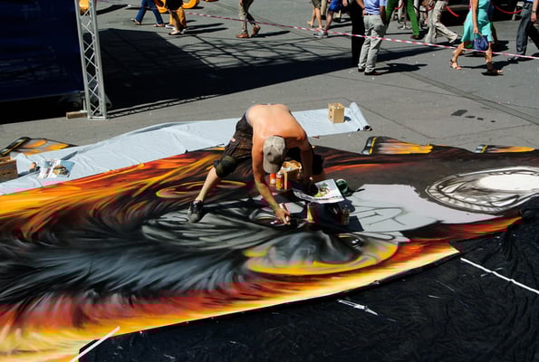 Was kann man den bemalen, ausser Leinwand, Beton oder Stahl, und wie kann man dieses Bild inszenieren?